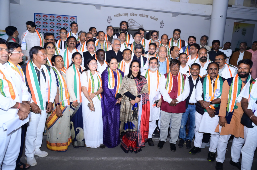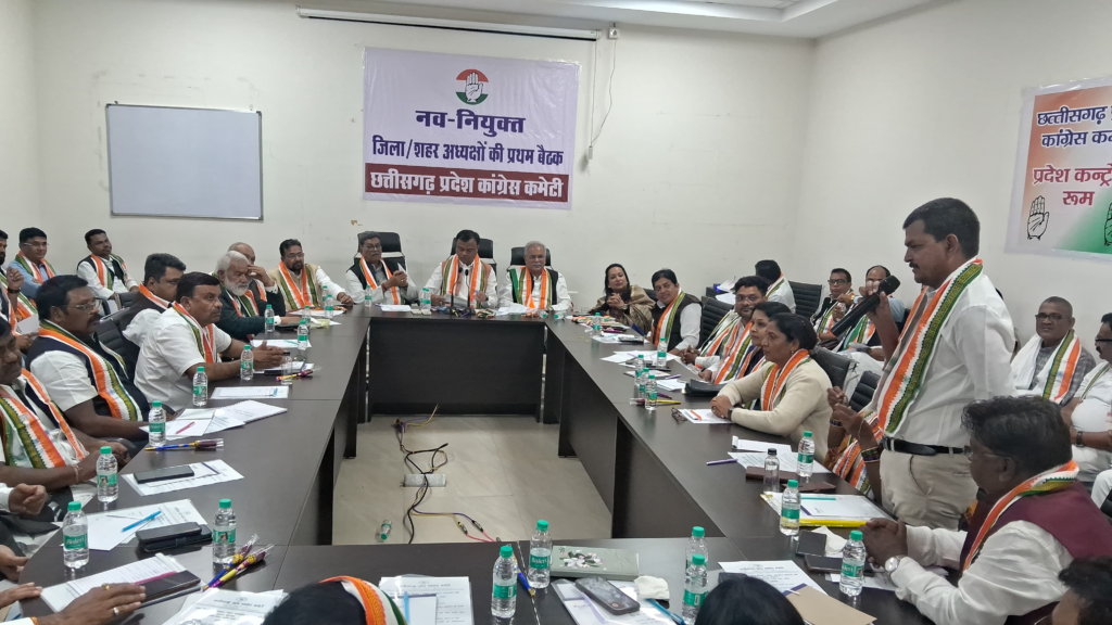 रायपुर, 06 दिसंबर। Congress के नवनियुक्त जिला एवं शहर कांग्रेस अध्यक्षों की पहली बैठक आज राजीव भवन में प्रदेश कांग्रेस अध्यक्ष दीपक बैज की अध्यक्षता में संपन्न हुई। बैठक में नेता प्रतिपक्ष डॉ. चरणदास महंत, पूर्व मुख्यमंत्री भूपेश बघेल, एआईसीसी प्रभारी सचिव जरिता लेतफ्लांग एवं विजय जांगिड़, पूर्व उपमुख्यमंत्री टी.एस. सिंहदेव सहित कई वरिष्ठ नेता उपस्थित रहे।