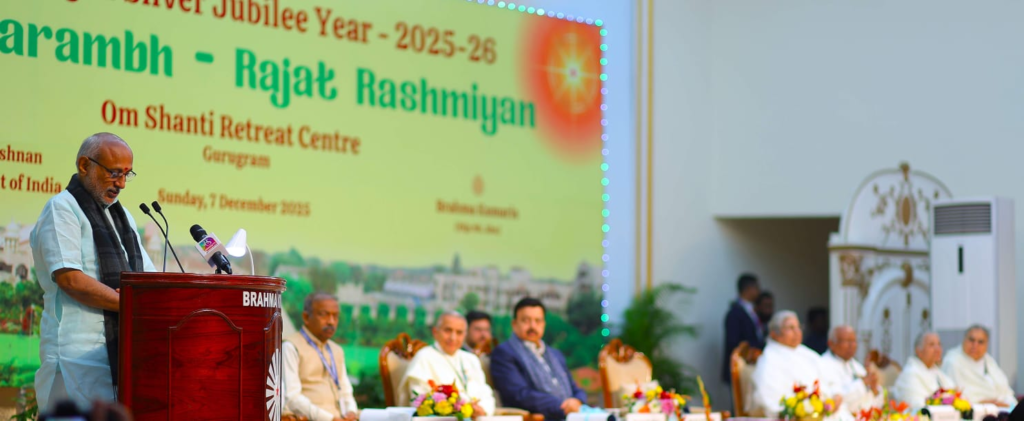 गुरुग्राम, 08 दिसंबर। Om Shanti Retreat Centre : भारत के उप राष्ट्रपति एवं राज्यसभा सभापति सी. पी. राधाकृष्णन ने कहा कि भारत की समृद्ध आध्यात्मिक परंपराएं राजयोग, विपस्सना, तपस्या और ध्यान विश्व को शांति, सत्य और आत्मबल का मार्ग दिखा रही हैं। ऋषि-मुनियों की साधना की यही विरासत आज भारत को विश्व गुरु के रूप में स्थापित कर रही है। वे गुरुग्राम के बहोड़ा कलां स्थित ब्रह्माकुमारी ओम शांति रिट्रीट सेंटर (ORC) के रजत जयंती वर्ष शुभारंभ–रश्मियां कार्यक्रम में मुख्य अतिथि के रूप में संबोधित कर रहे थे।