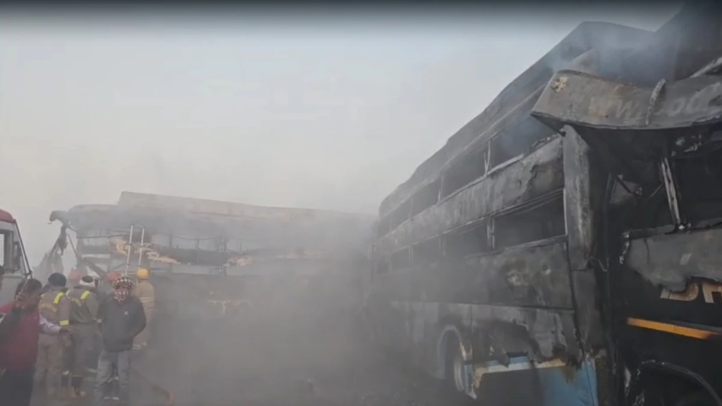 प्रत्यक्षदर्शियों के मुताबिक, घना कोहरा होने के कारण दृश्यता बेहद कम थी। टक्कर के बाद कई यात्री वाहनों में फंस गए, जबकि कुछ लोग बसों से कूदकर अपनी जान बचाने में सफल रहे। आग लगने से अंदर फंसे यात्रियों की जलकर मौत हो गई। हादसे में घायल कानपुर निवासी सौरभ ने बताया कि कोहरा इतना घना था कि कुछ भी दिखाई नहीं दे रहा था, इसी वजह से कई वाहन एक-दूसरे से टकरा गए और आग लग गई।