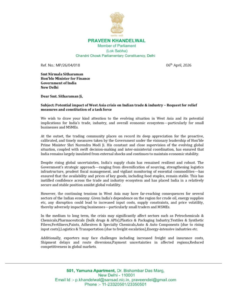 CAIT ने कहा कि पश्चिम एशिया संकट के चलते कच्चे तेल की कीमतों में बढ़ोतरी, सप्लाई में बाधा और लागत में इजाफा हो सकता है, जिसका असर पेट्रोकेमिकल, फार्मा, टेक्सटाइल, उर्वरक, केमिकल, ऑटो कंपोनेंट और लॉजिस्टिक्स जैसे कई सेक्टरों पर पड़ेगा।